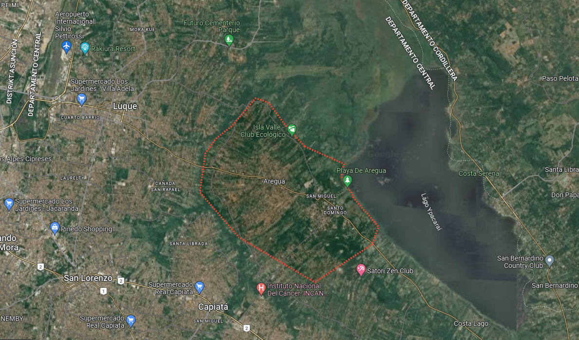 Das Objekt befindet sich an einer ruhigen Asphaltstraße mit hervorragender Anbindung an das Zentrum der kleinen Kulturstadt Areguá. Deutschsprachige Restaurants, Bäcker und Metzger befinden sich in unmittelbarer Nähe, ebenso eine große europäische Community.